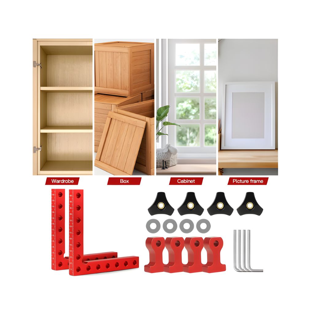Les équerres d’angle pour le travail du bois sont fabriquées en alliage d’aluminium et en acier inoxydable, avec une finition anodisée qui les rend résistantes à la corrosion et à l’usure. Leur usinage de haute précision garantit solidité et fiabilité.