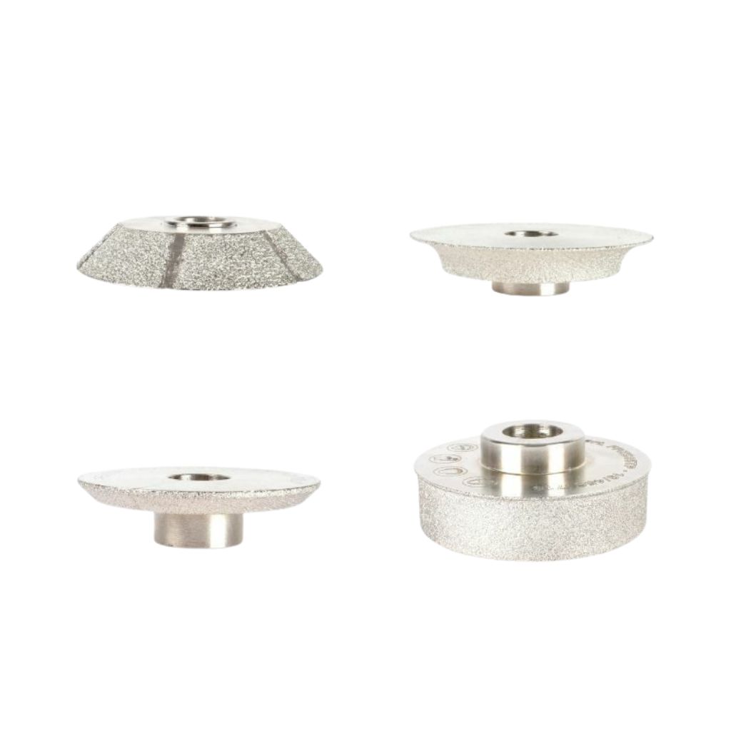 Meules diamantées brasées pour les faïenceuses électriques professionnelles Toprofile Montolit. Idéales pour le travail à sec des carreaux de grès cérame et des matériaux frittés (grandes dalles céramiques).