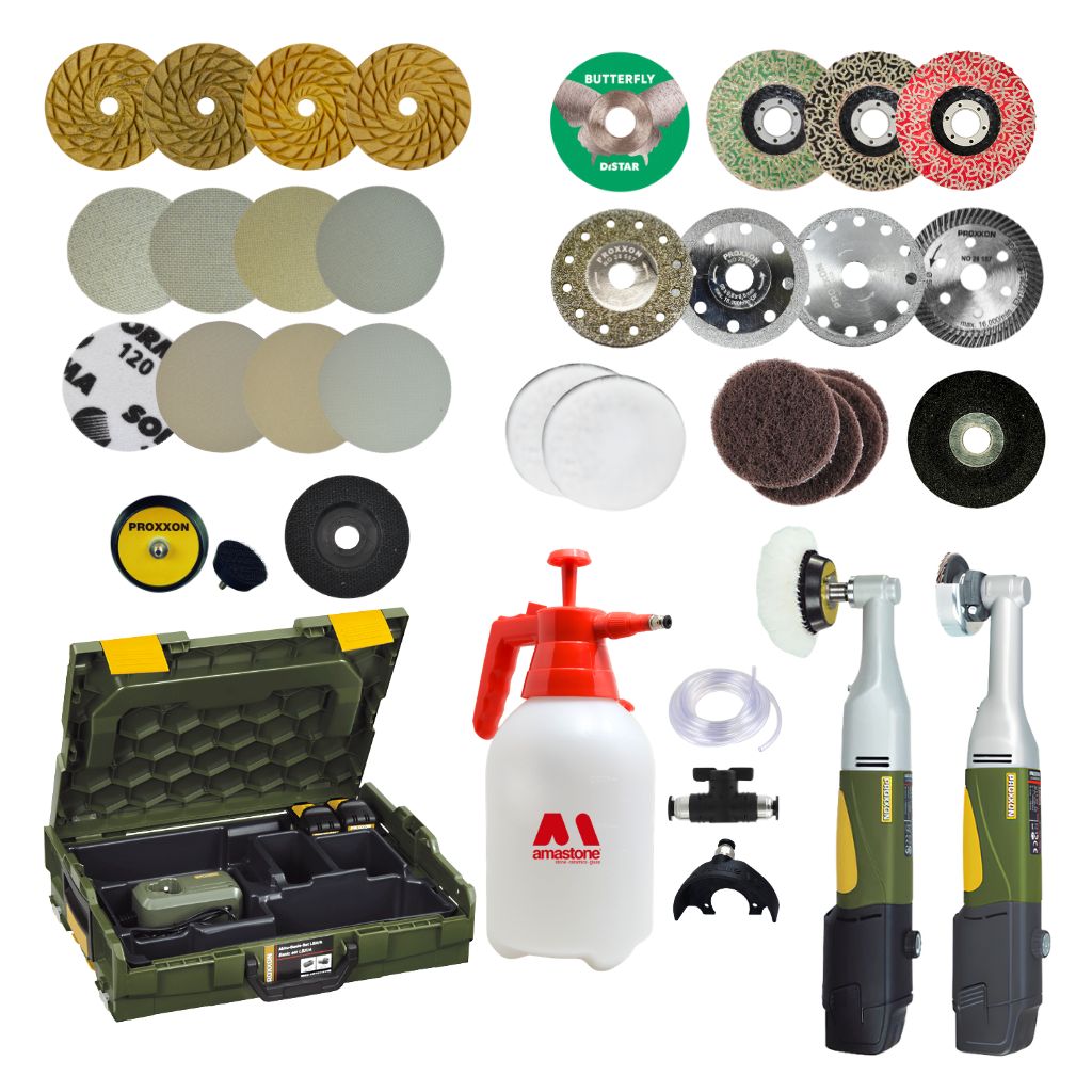 Le PROKIT Polisseuse et Meuleuse est un système complet conçu pour l’usinage professionnel de la céramique et du grès cérame. Il permet d’effectuer des opérations de coupe, façonnage, chanfreinage et polissage à l’aide d’outils dédiés.
