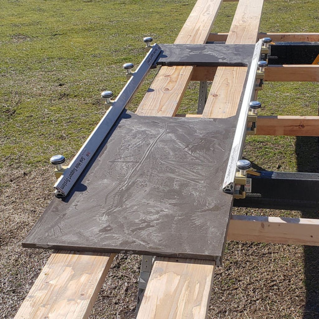 Le système est composé de deux barres de renfort en aluminium et de pinces mécaniques qui se fixent directement sur les bords extérieurs du plan. Ce système de renfort monté en rive permet de soutenir efficacement les zones les plus sollicitées, en réduisant la flexion et en évitant les ruptures ou fissures accidentelles aux points critiques.